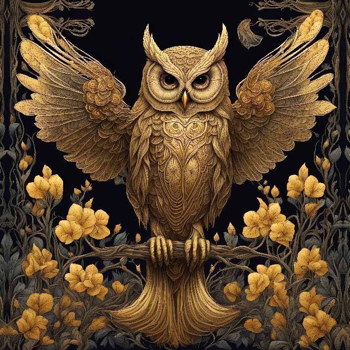 Carré CHOUETTE GOLD AILES DEPLOYEES 40X40 - polyester IMPERMEABLE