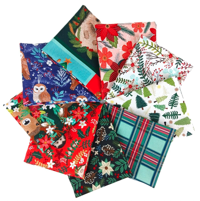 Chaque pièce capture l'esprit des fêtes avec de jolis imprimés d'animaux festifs, enveloppés dans une atmosphère rustique et conviviale. Parfaite pour confectionner des quilts de Noël, des décorations et des cadeaux qui apportent la joie et le confort d'un Noël en forêt dans chaque maison.