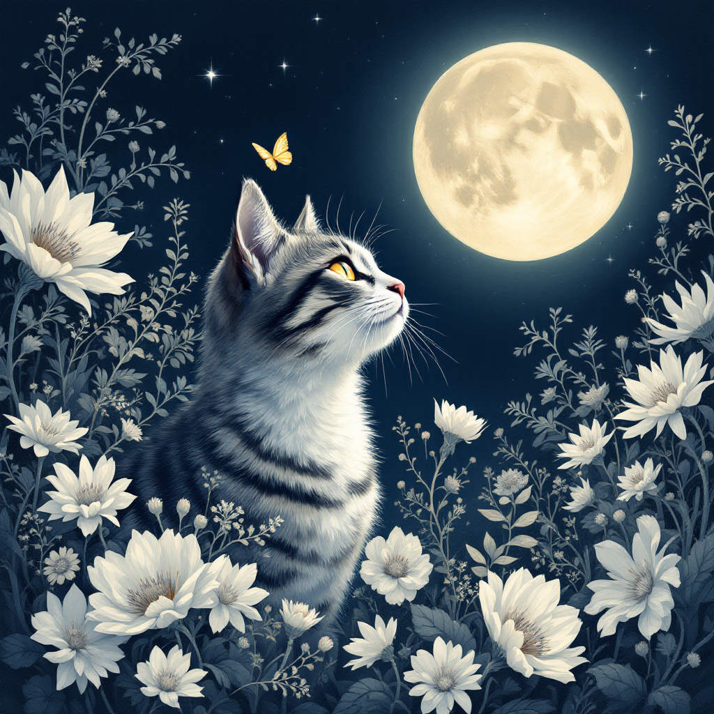 COUPON CHAT CLAIR DE LUNE FLEURS BLANCHES 20X20 - tissu 100% coton