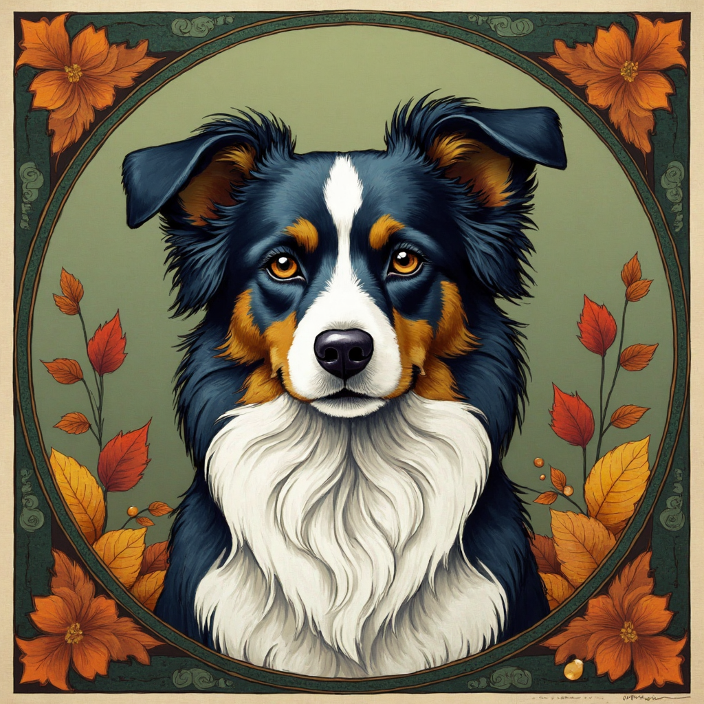 COUPON BERGER AUSTRALIEN DE FACE AUTOMNE FOND VERT 20X20 - tissu 100% coton