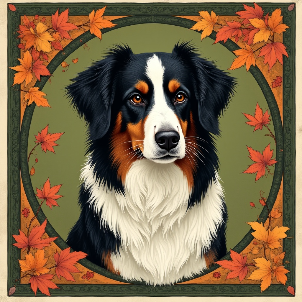 COUPON BERGER AUSTRALIEN DE 3/4 AUTOMNE FOND VERT 20X20 - tissu 100% coton
