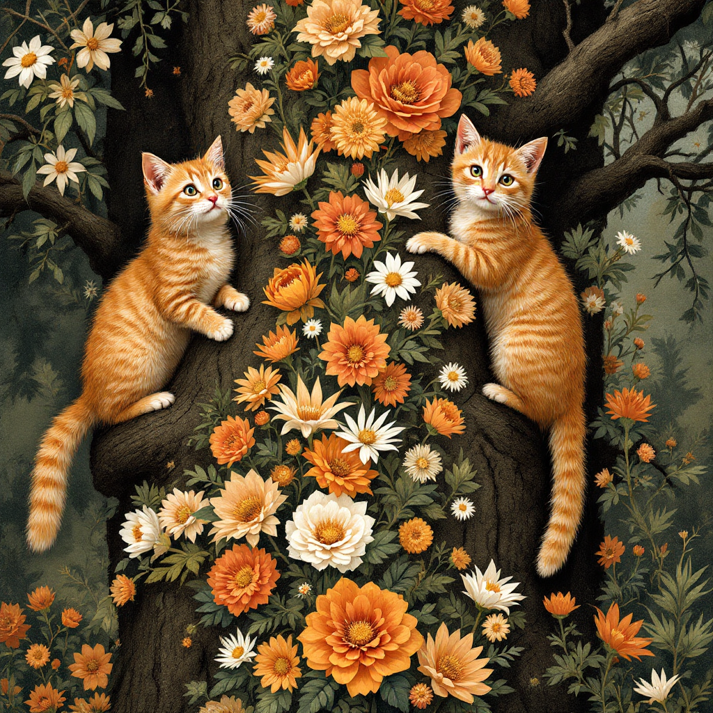 COUPON COUPLE CHATS ROUX DANS L'ARBRE 20X20 - tissu 100% coton