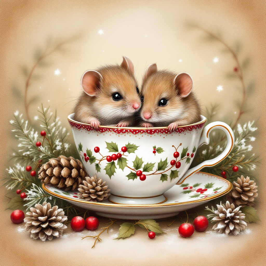 COUPON COUPLE SOURIS TASSE FOND BEIGE ET VERT 20X20 - tissu 100% coton