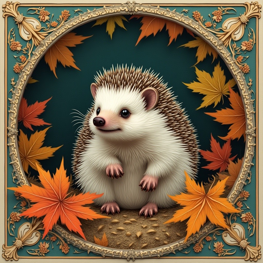 COUPON HERISSON FEUILLES AUTOMNE 20X20 - tissu 100% coton