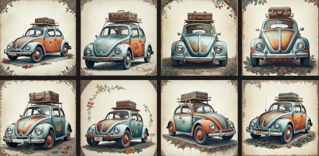 Ensemble de 8 coupons 13X13 COCCINELLES VW VINTAGE à coudre pour lingettes - exclusivité Nadège Tissus