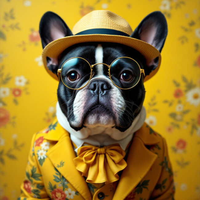 COUPON BOULEDOGUE LUNETTES VESTE JAUNE 20X20 - tissu 100% coton