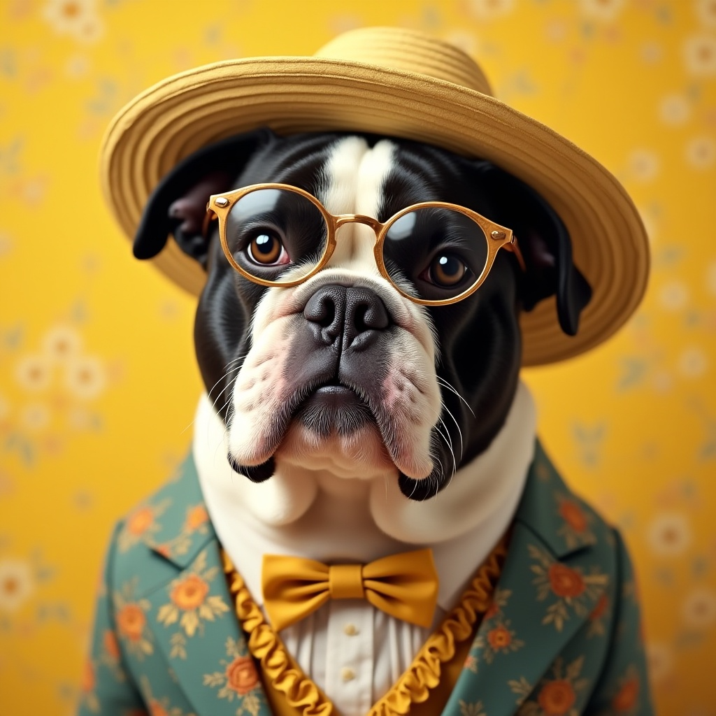 COUPON BOULEDOGUE LUNETTES VESTE VERTE A FLEURS 20X20 - tissu 100% coton