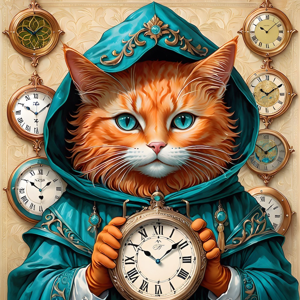 COUPON CHAT ROUX MAITRE DU TEMPS 20X20 - tissu 100% coton