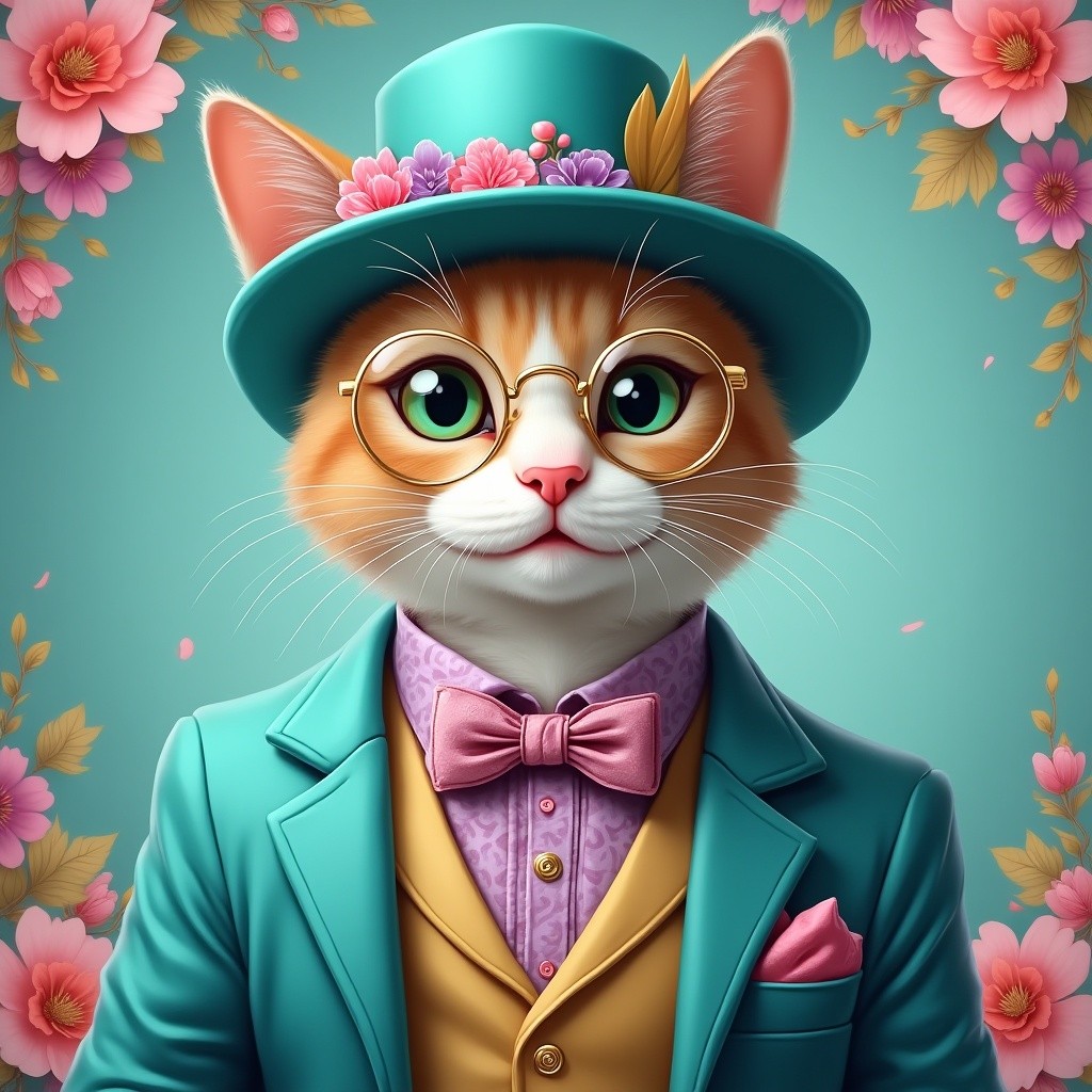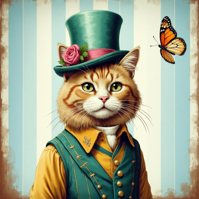 COUPON CHAT ROUX CHAPEAU ET VESTE TURQUOISES 20X20 - tissu 100% coton
