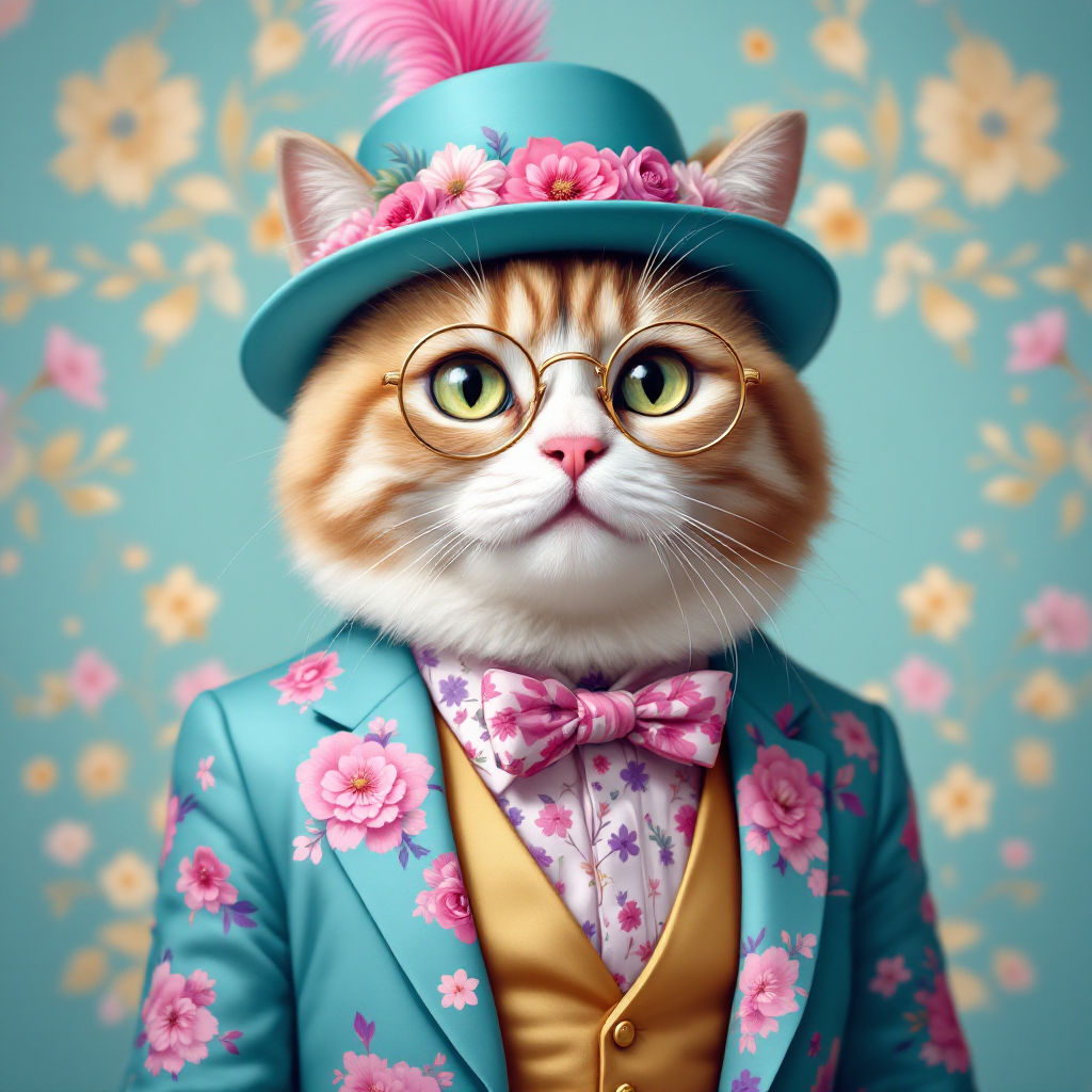COUPON CHAT ROUX VESTE TURQUOISE A FLEURS ROSES 20X20 - tissu 100% coton