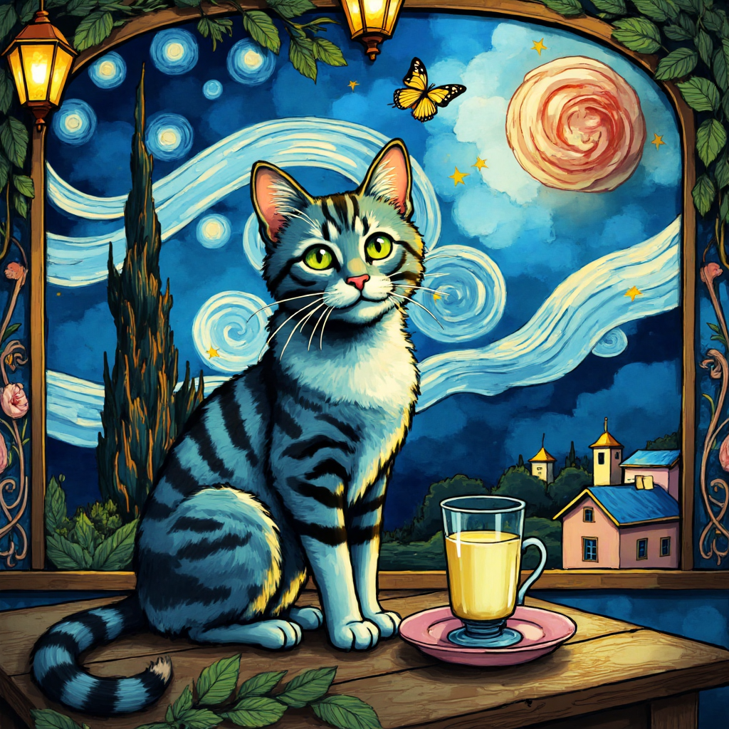 COUPON CHAT TIGRE DE FACE NUIT ETOILEE 20X20 - tissu 100% coton