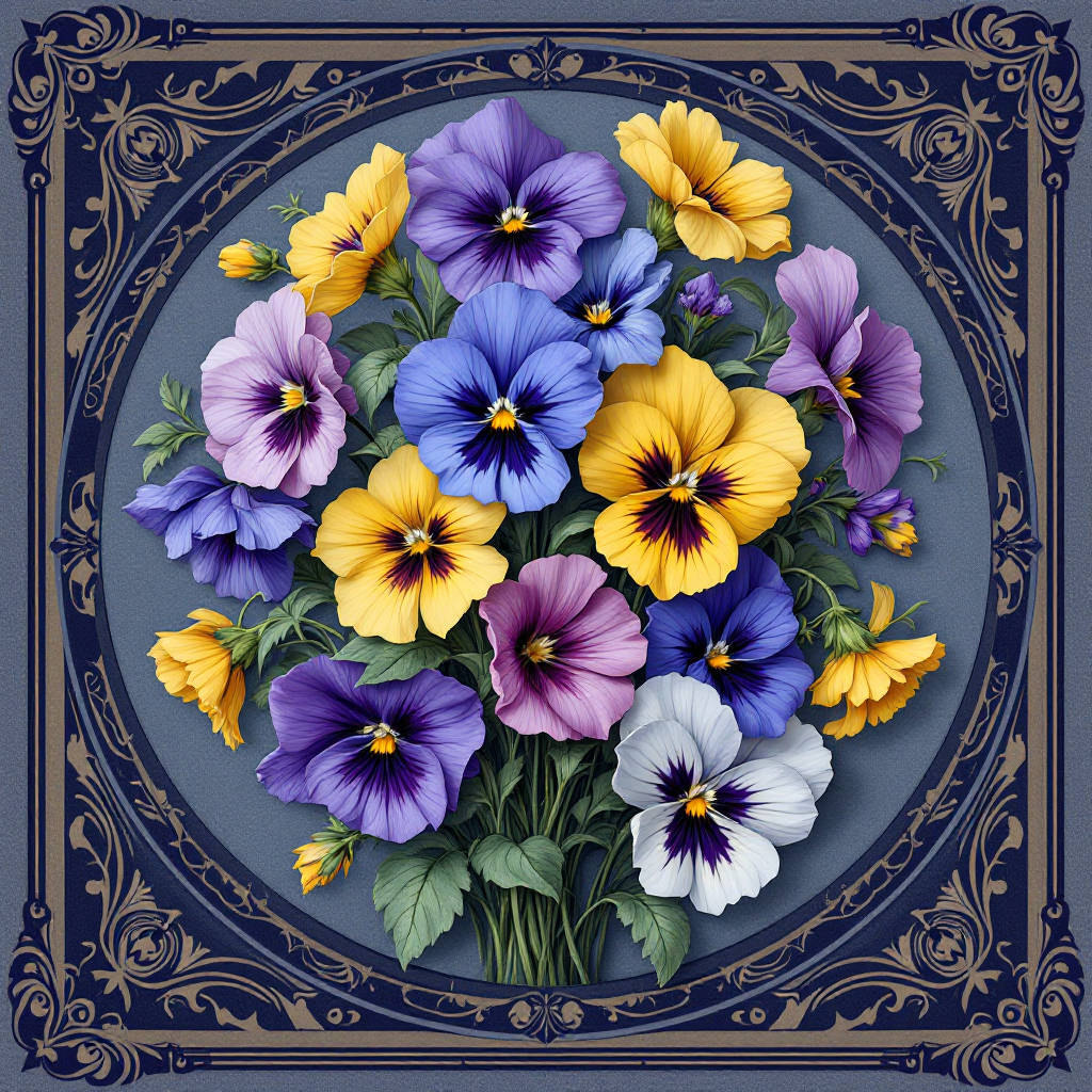 COUPON BOUQUET PENSEES CADRE PURPLE 20X20 - tissu 100% coton