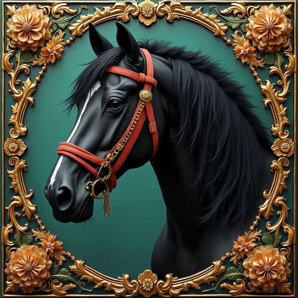 COUPON CHEVAL NOIR HARNAIS ROUGE 20X20 - tissu 100% coton