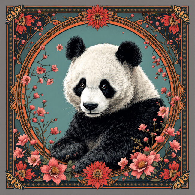 COUPON PANDA FLORAL FOND TEAL 20X20 - tissu 100% coton