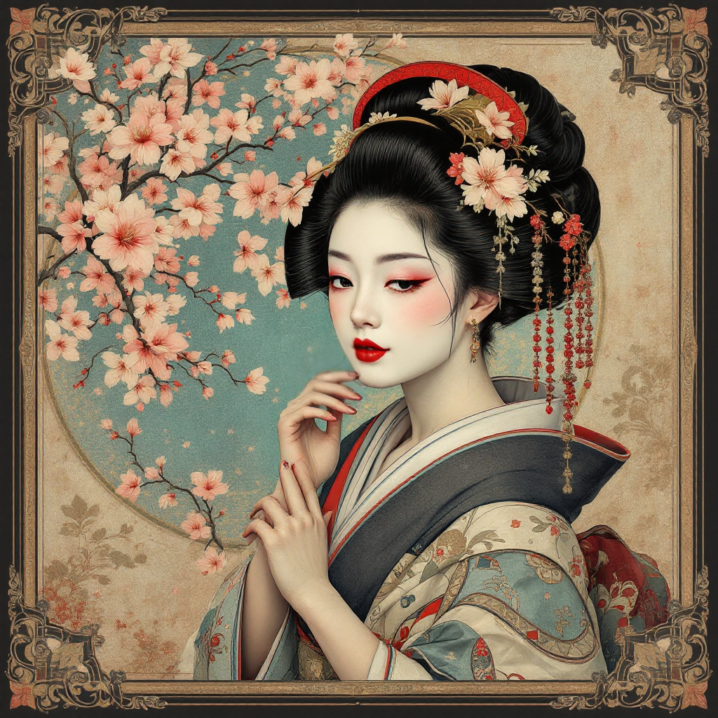 COUPON GEISHA KIMONO BEIGE CELADON FOND BEIGE 20X20 - tissu 100% coton