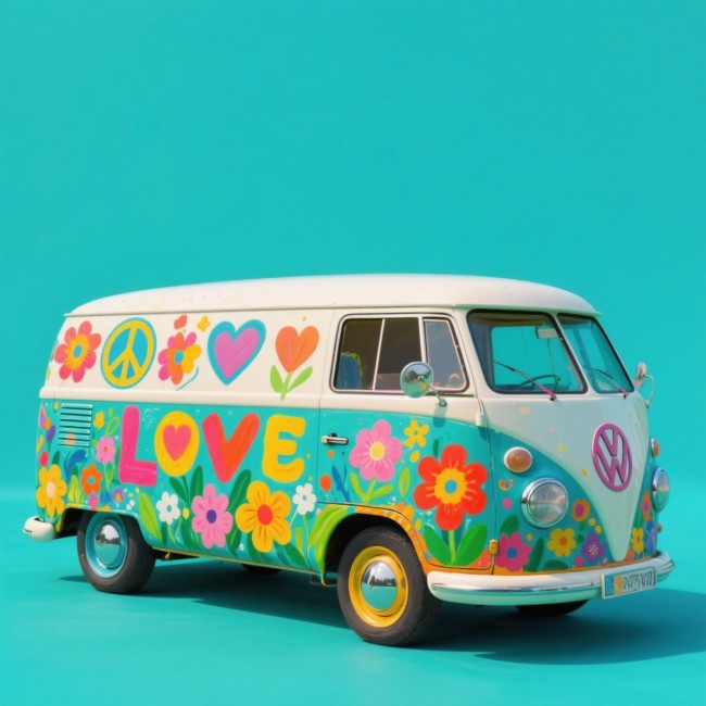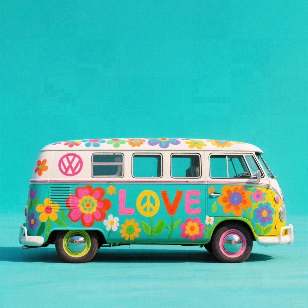 COUPON COMBI VW LOVE DE PROFIL TURQUOISE 20X20 - tissu 100% coton