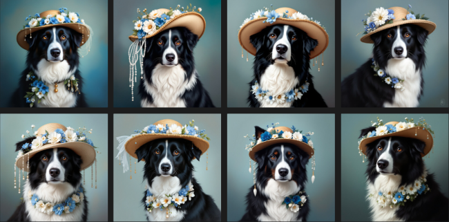 Ensemble de 8 coupons 13X13 BORDER COLLIE CHAPEAU FLEURS BLEUES à coudre pour lingettes - exclusivité Nadège Tissus