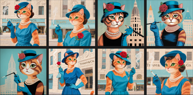 Ensemble de 8 coupons 13X13 CHAT AUDREY TIFFANY'S à coudre pour lingettes - exclusivité Nadège Tissus