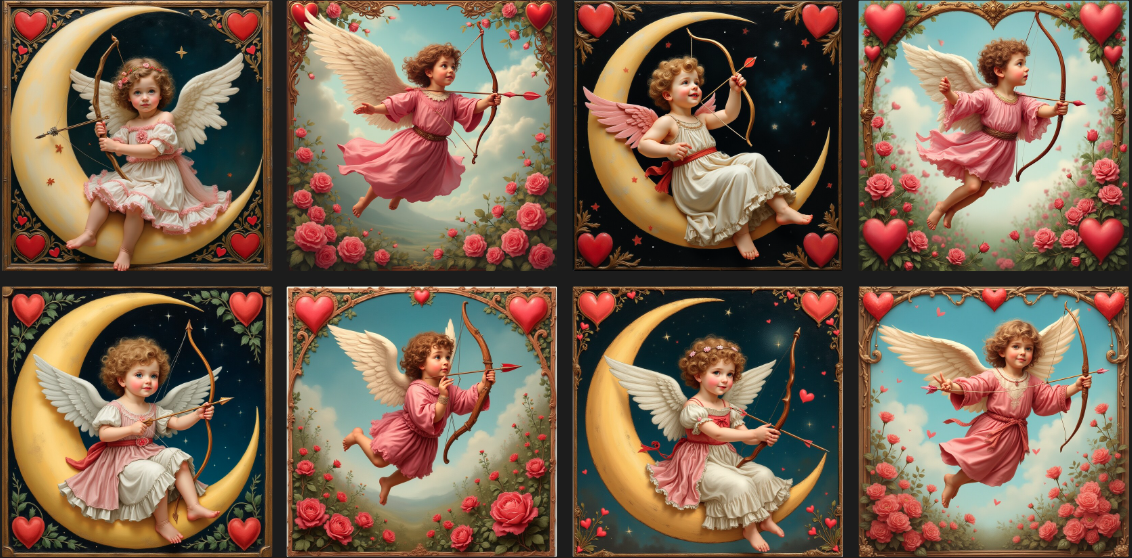Ensemble de 8 coupons 13X13 CUPIDONS LUNES ET ROSES à coudre pour lingettes - exclusivité Nadège Tissus