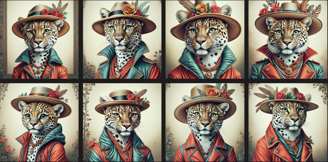 Ensemble de 8 coupons 13X13 LEOPARDS CHAPEAUX BEIGES FLEURIS à coudre pour lingettes - exclusivité Nadège Tissus
