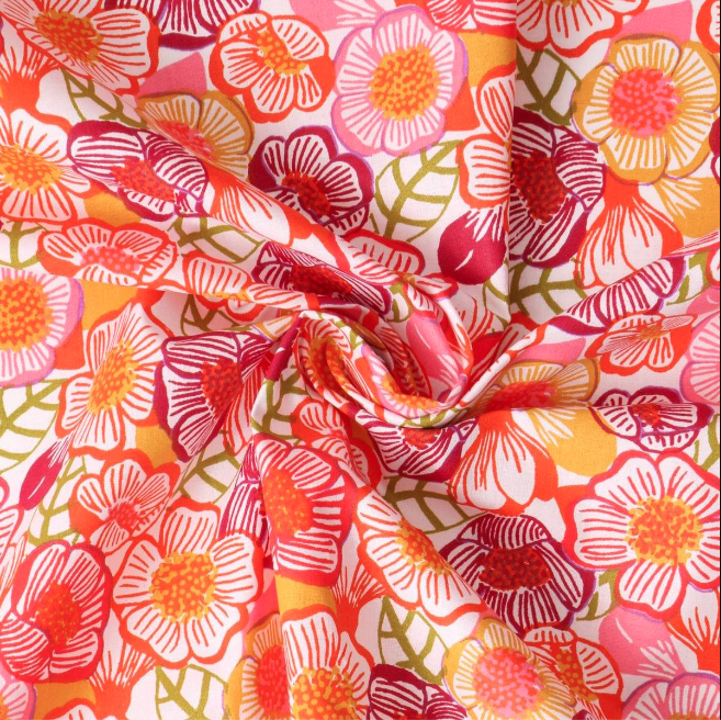Ce tissu lisse et  léger est 100 % coton, une matière facile à coudre.
