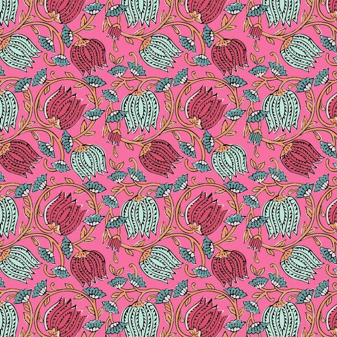 Tissu cretonne CHAI ROSE BLEU - vendu par 50 cm