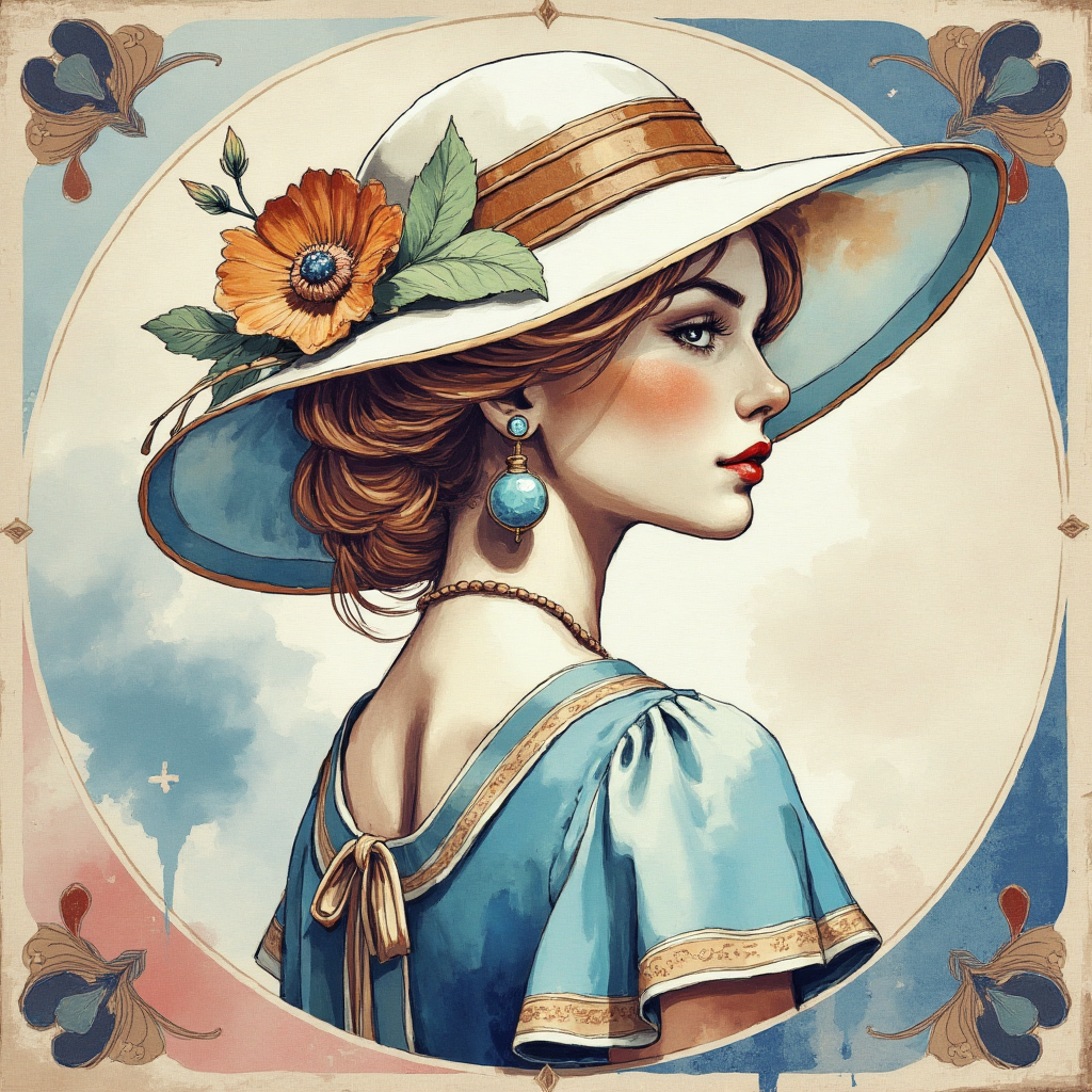 COUPON FEMME DOS CHAPEAU ROBE BLEU VINTAGE 20X20 - tissu 100% coton