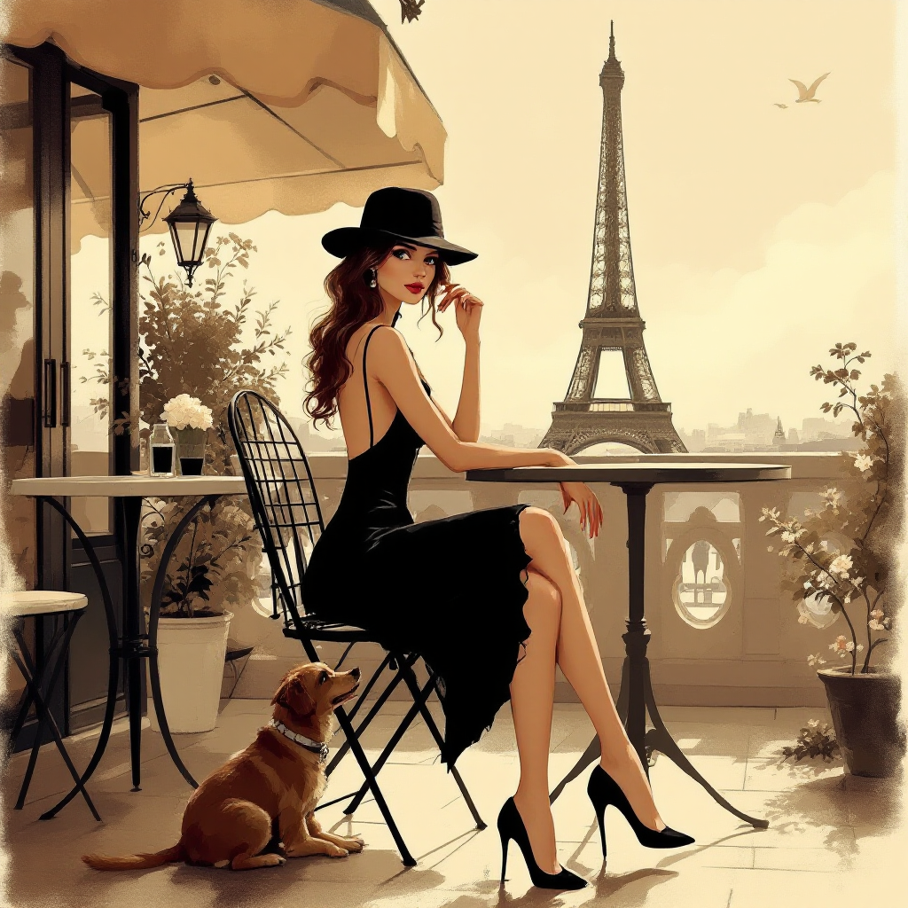 COUPON PARISIENNE ROBE NOIRE SEPIA 20X20 - tissu 100% coton