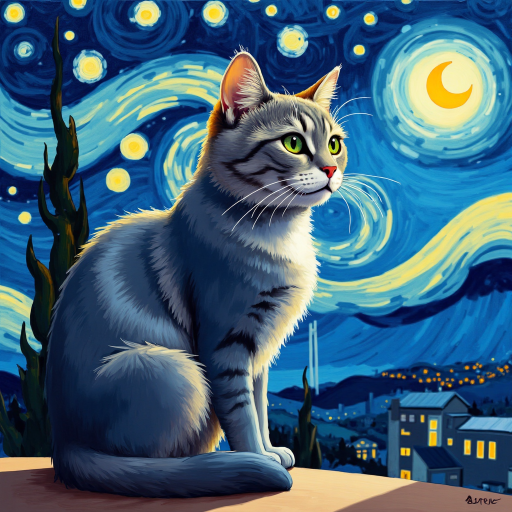 COUPON GROS CHAT GRIS NUIT ETOILEE 20X20 - tissu 100% coton