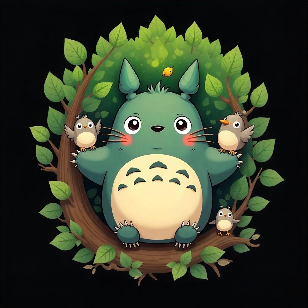 COUPON TOTORO 3 OISEAUX 20X20 - tissu 100% coton