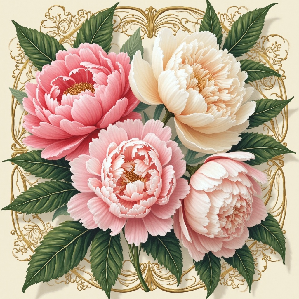 COUPON BOUQUET PIVOINES FOND CREME 20X20 - tissu 100% coton