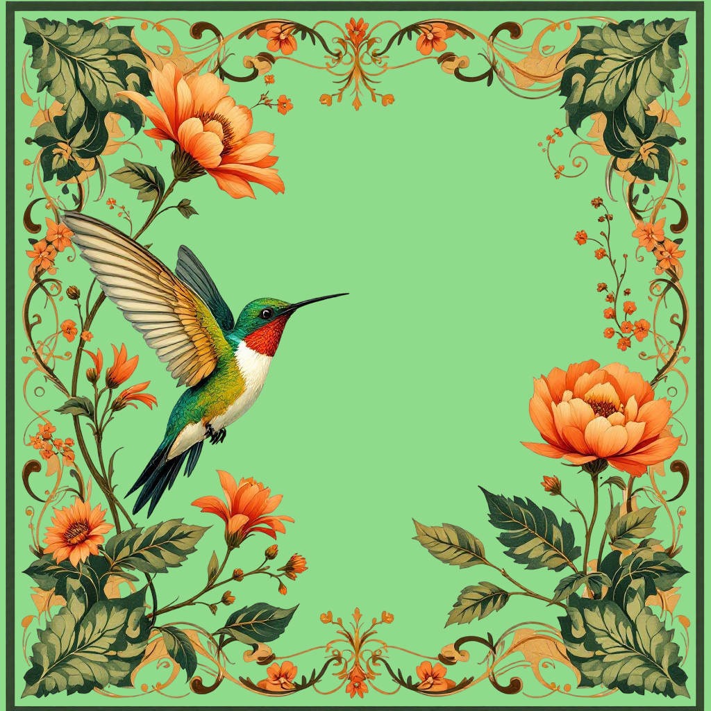 COUPON COLIBRI FOND VERT 20X20 - tissu 100% coton