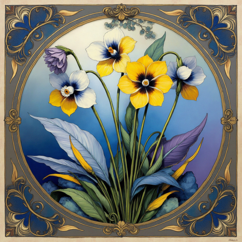 COUPON PETITS NARCISSES JAUNE BLEU 20X20 - tissu 100% coton