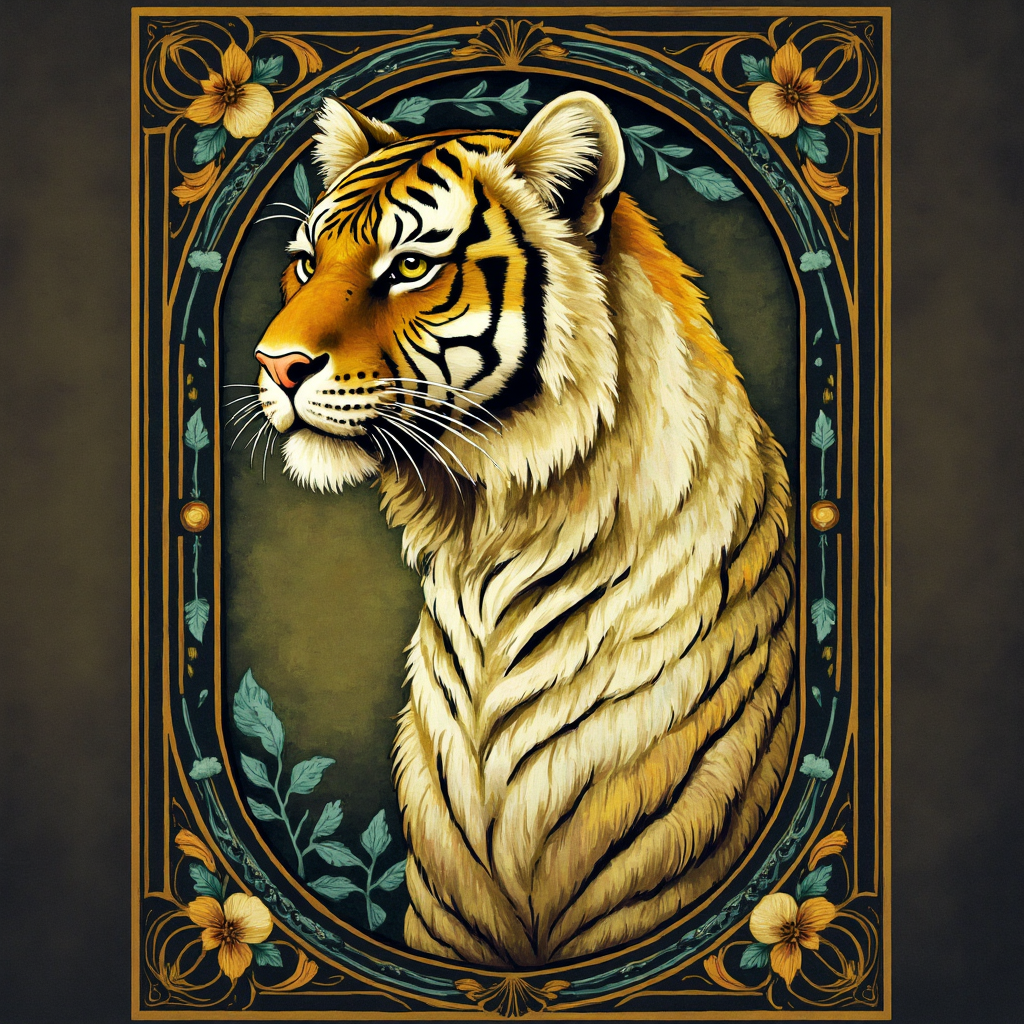 COUPON PORTRAIT DE TIGRE ART NOUVEAU 20X20 - tissu 100% coton