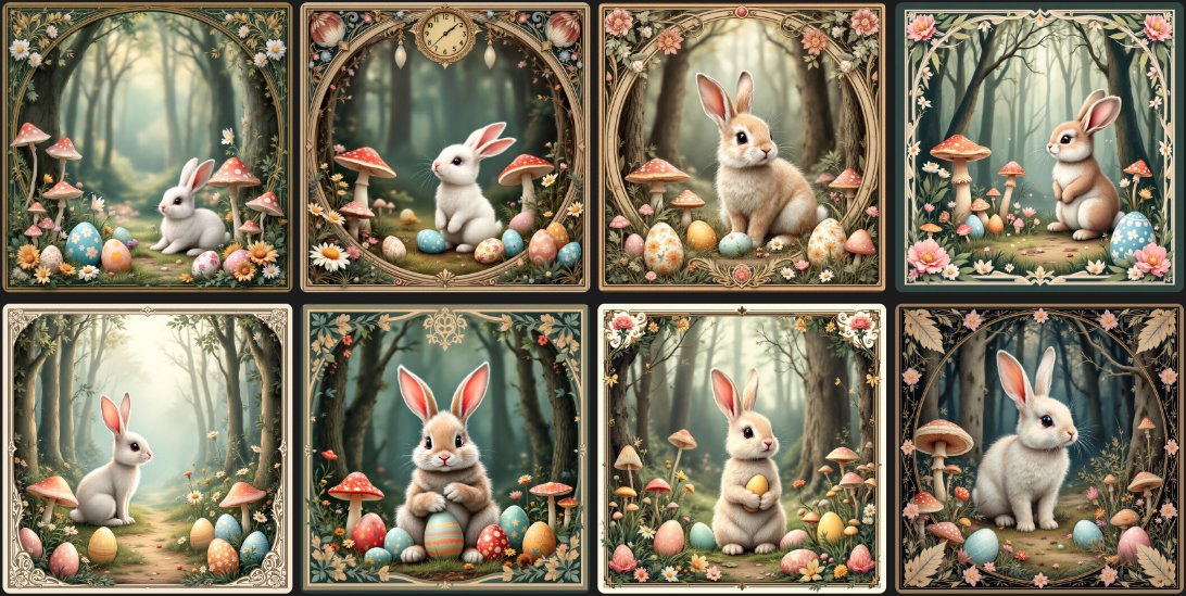 Ensemble de 8 coupons 13X13 LAPINS OEUFS DE PAQUES CHAMPIGNONS à coudre pour lingettes - exclusivité Nadège Tissus