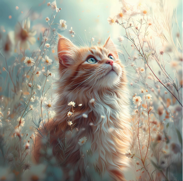 Carré CHAT ROUX CHAMP FLEURS 40X40 - polyester IMPERMEABLE