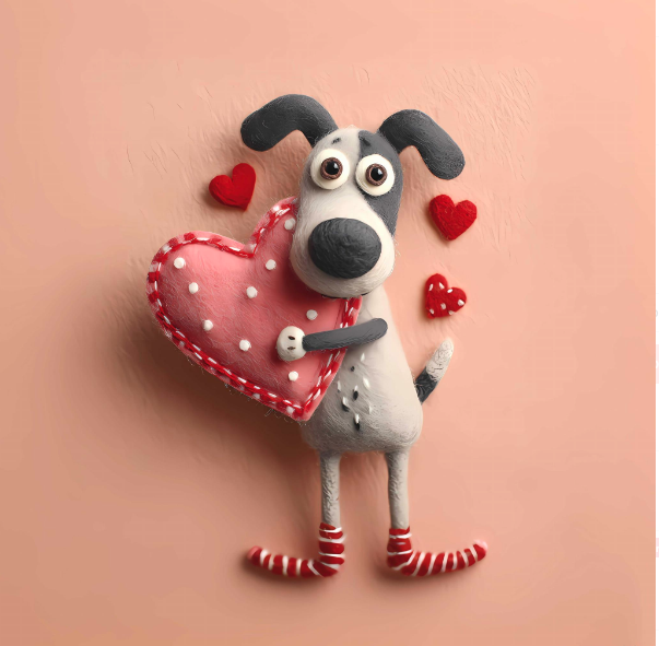 Carré CHIEN COEUR ST VALENTIN 20X20 - polyester IMPERMEABLE