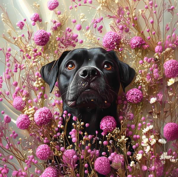 Carré BEBE CANE CORSO FLEURS ROSES 40X40 - polyester IMPERMEABLE
