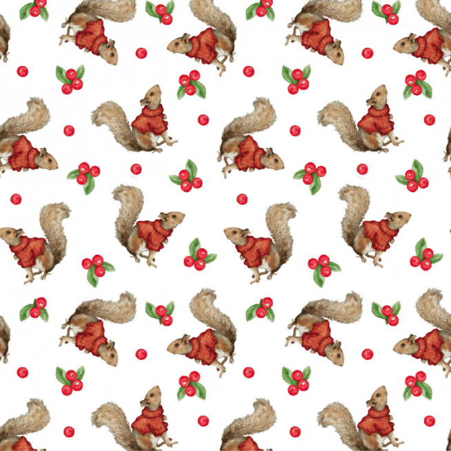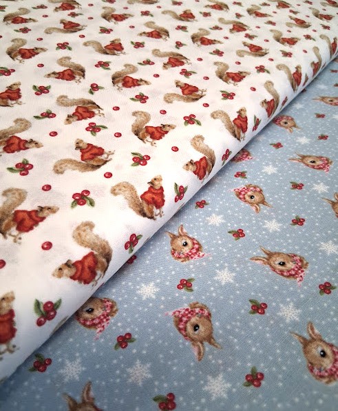 Magical Menagerie – Henry Glass Fabrics est une collection de tissus pleine de charme et de féérie, qui invite à plonger dans un univers hivernal tendre et enchanteur. On y découvre d'adorables écureuils vêtus de pulls rouges, espiègles et chaleureux, ainsi que de jolies têtes de lapins, délicatement illustrées, enveloppés dans une écharpe, pour une ambiance cosy et réconfortante.