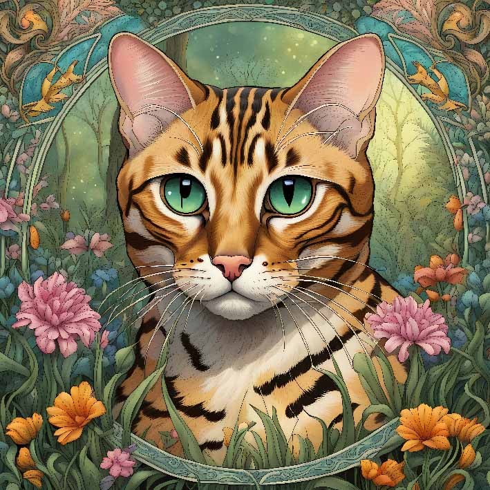 Carré PORTRAIT CHAT BENGAL FLORAL 45X45 - Velours Manille