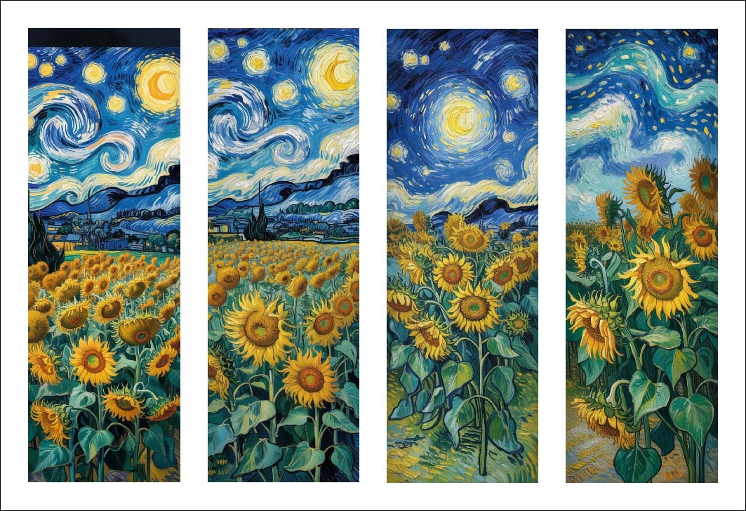 PANNEAU POUR MARQUES PAGES GROS TOURNESOLS NUIT ETOILEE - polyester IMPERMEABLE