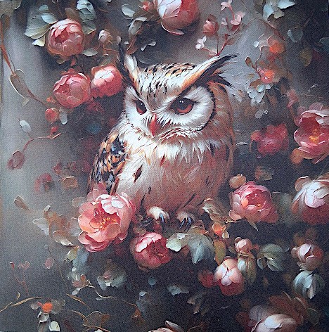 Carré CHOUETTE PIVOINES 40X40 - polyester IMPERMEABLE