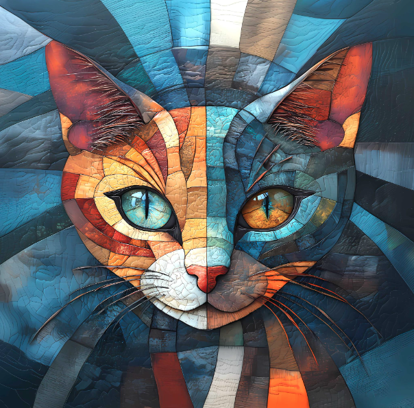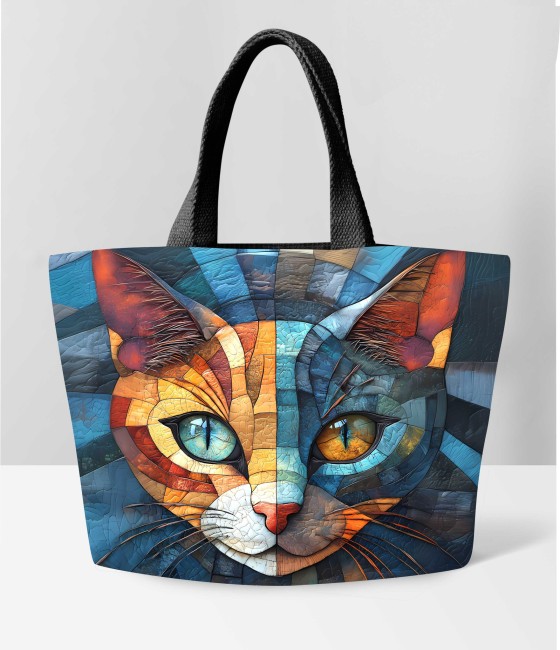 Carré CHAT MOSAIQUE YEUX VAIRONS 40X40 - polyester IMPERMEABLE