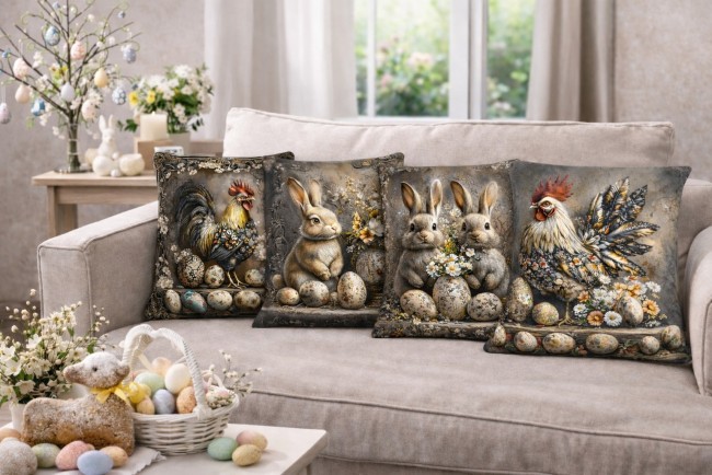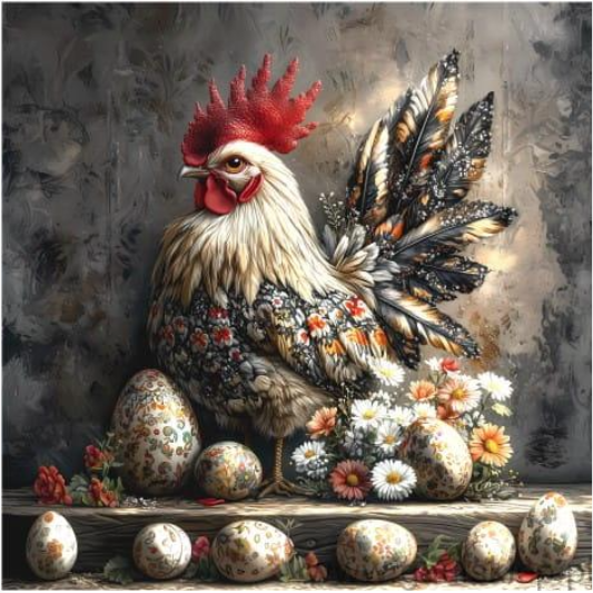 Carré POULE OEUFS GRIS - Velours Premium