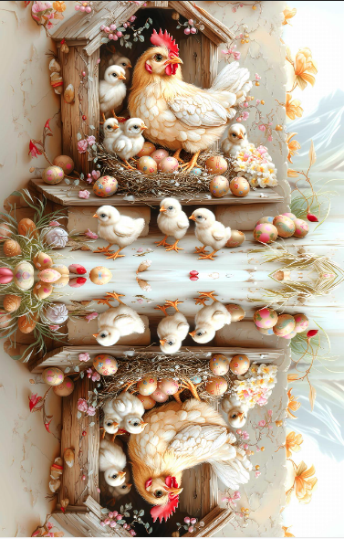CHEMIN DE TABLE CABANE POULE POUSSINS 50X80 - 100% polyester aspect lin infroissable