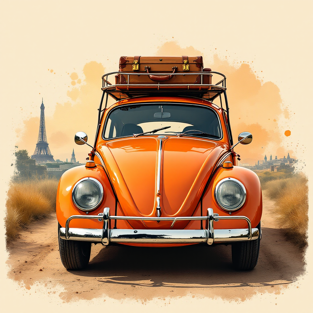 COUPON COCCINELLE ORANGE DE FACE TOUR EIFFEL 20X20 - 100% coton