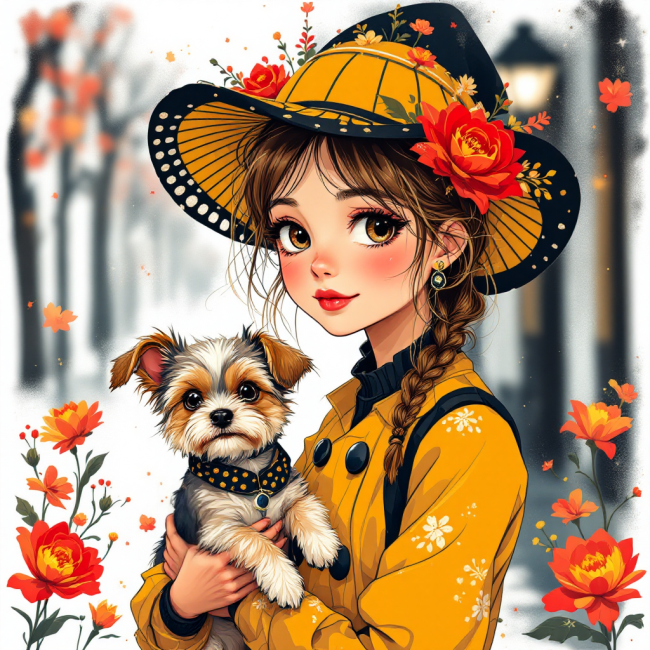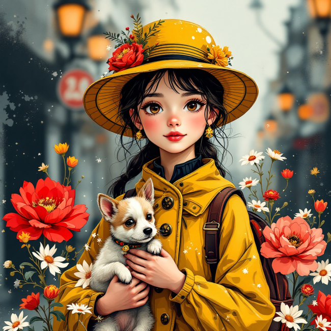 COUPON FILLETTE IMPER JAUNE JACK RUSSELL 20X20 - 100% coton