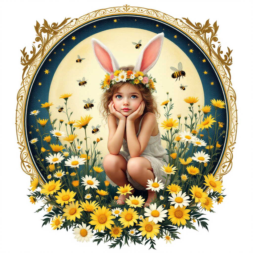 COUPON FILLETTE OREILLES LAPIN FOND BLANC 20X20 - 100% coton
