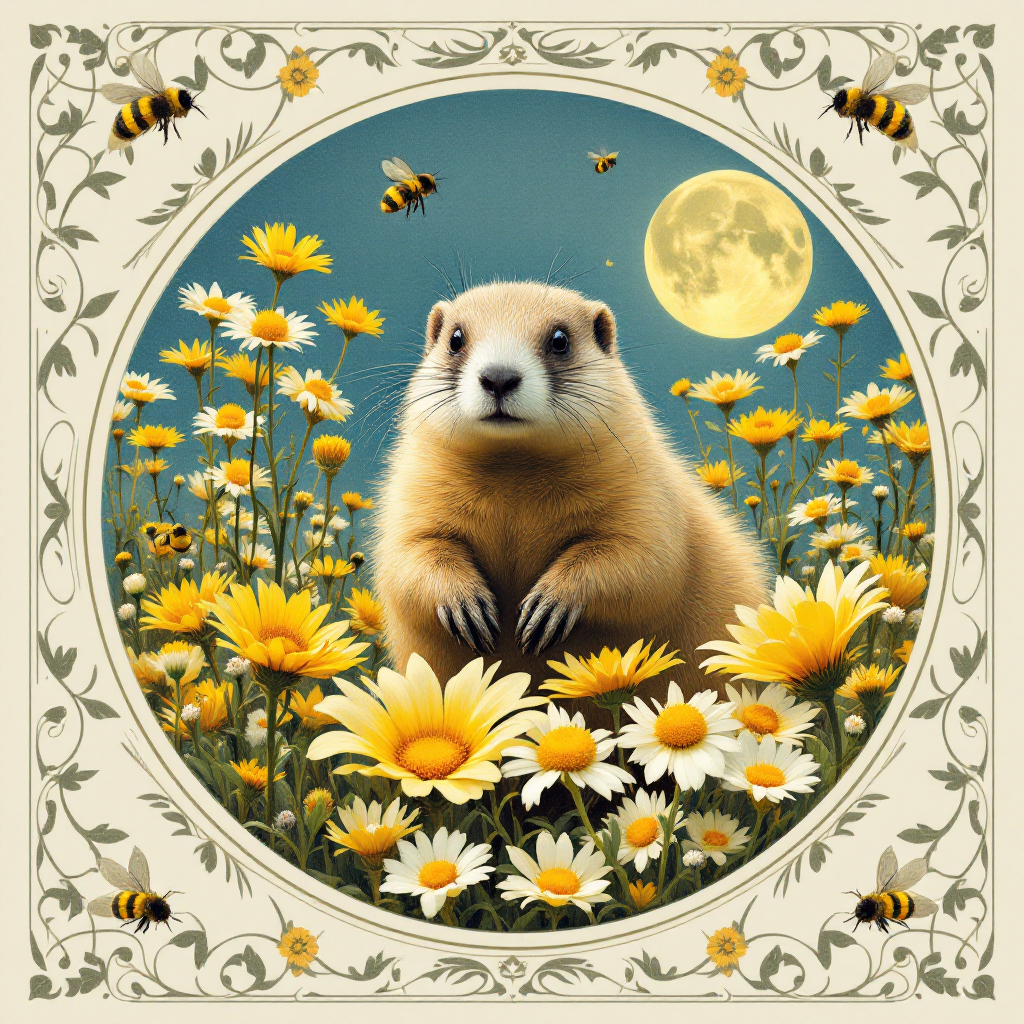 COUPON MARMOTTE DE FACE FLEURS JAUNES 20X20 - 100% coton