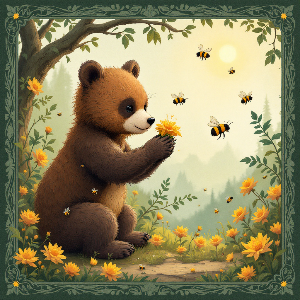 COUPON OURSON ABEILLES CADRE VERT 20X20 - 100% coton